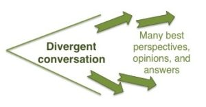 Bob is certainly not an idiot. But he was making one of the oldest mistakes in the book. As the first diagram suggests he was conducting a convergent conversation. He believed there was one best way forward – and all he had to do was persuade Susan. Wrong! I asked, “Is there really only one way forward? Could there be other, better ones? Did you actually stop to listen to Susan?” “No, I didn’t” he replied sheepishly.